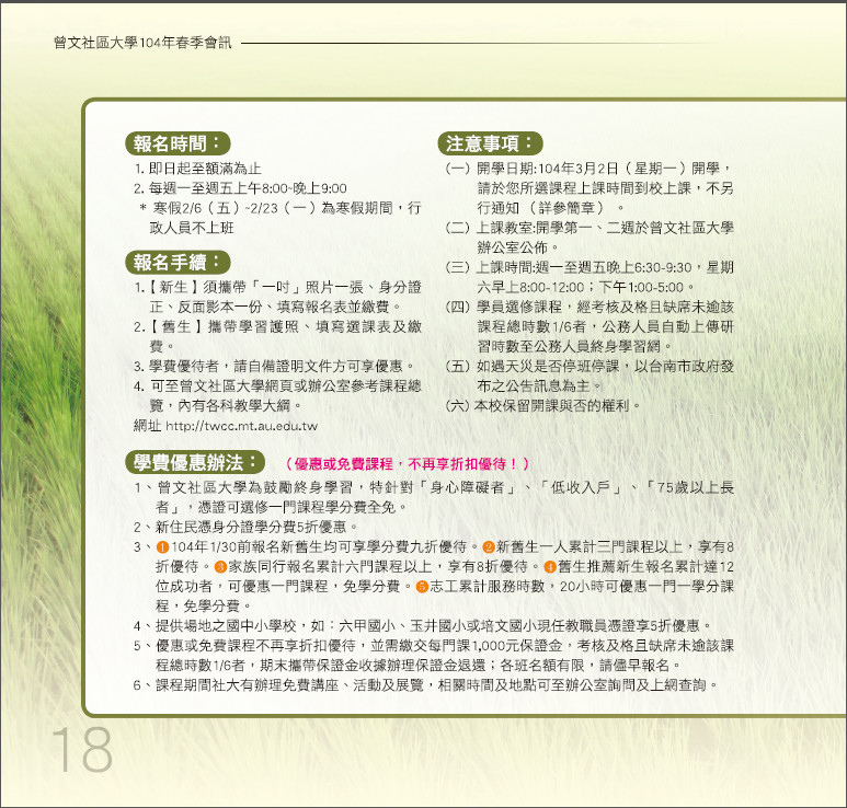 曾文社區大學2015招生簡章