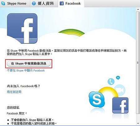 這次的Skype5.0也整合了臉書Facebook,所以設定上得好好檢查一下。