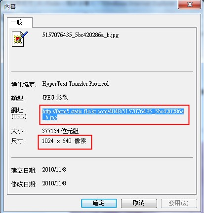 三.Flickr相簿最多只能顯示1024x1024大小,所以外連最多也是這個尺寸,若需要外連更大尺寸,請參考照篇。