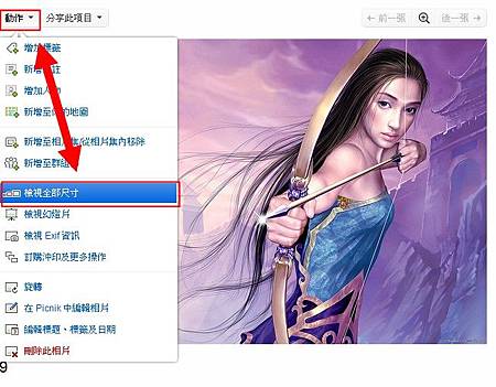不管用什麼方法,來到檢視照片的畫面,然後按『動作』,選擇『檢視全部尺寸』