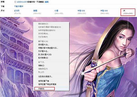 接著看需要使用哪一種尺寸大小的圖擋,然後用滑鼠右鍵選擇內容。
