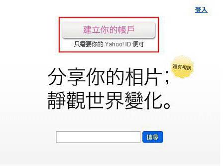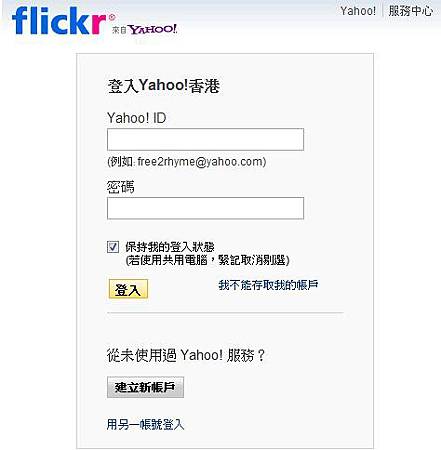 若沒有Yahoo帳號,就先到Yahoo奇摩去註冊一個。(目前Flickr相簿和Yahoo是合作關係)