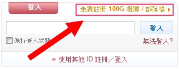 第一步 請到 痞客邦首頁 點選 免費註冊 100G 相簿/部落格